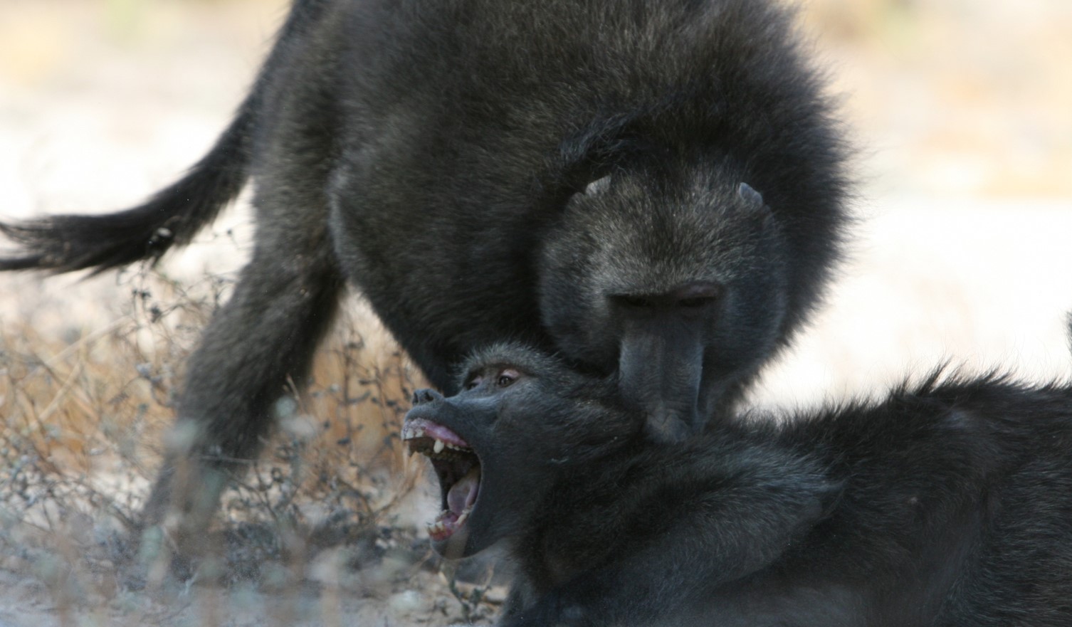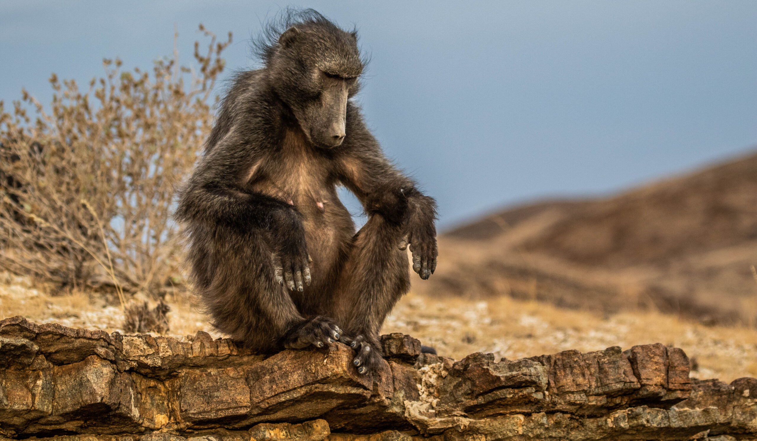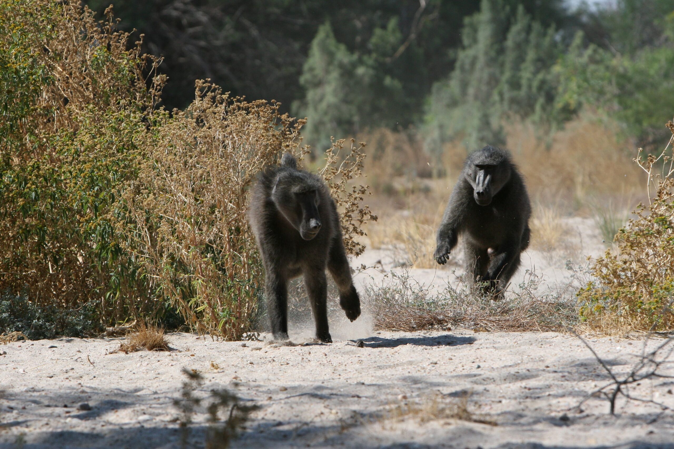 Surviving growing threats. The Tsaobis baboons range on the edge of the Namib desert. Our study is unique in documenting their lives in such an arid environment, which occasionally generate conflicts with farmers. Current research investigates how sociality modulates drought effects on mortality, as well as the dynamics of human-baboon conflicts, in the hope of improving our understanding of primate resilience to global warming and growing proximity of human settlements.